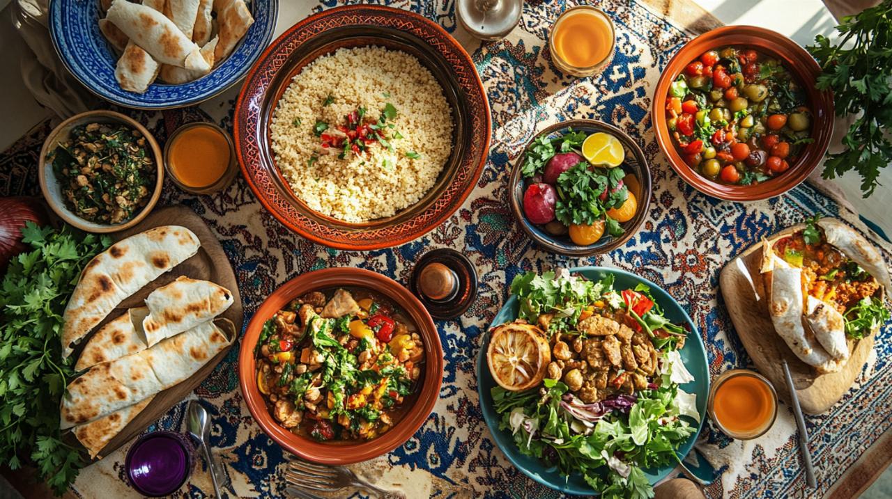 Túnez es un país diverso, y cada región tiene su propia interpretación del couscous. En la isla de Djerba, por ejemplo, es común encontrar versiones con pescado fresco y mariscos, aprovechando los más de 1400 kilómetros de costa que rodean el país. En el interior, las preparaciones incluyen cordero tierno acompañado de verduras de temporada y frutos secos como almendras y pasas, que añaden un toque dulce y una textura crujiente. El pan tradicional, ya sea el Tabouna o el Kesra, siempre está presente en la mesa para acompañar el couscous y recoger cada gota del delicioso caldo especiado. Además, la ensalada mechouia, elaborada con pimientos y tomates asados, se sirve como acompañamiento refrescante que contrasta con la calidez del plato principal, creando un balance perfecto entre lo picante, lo fresco y lo aromático.