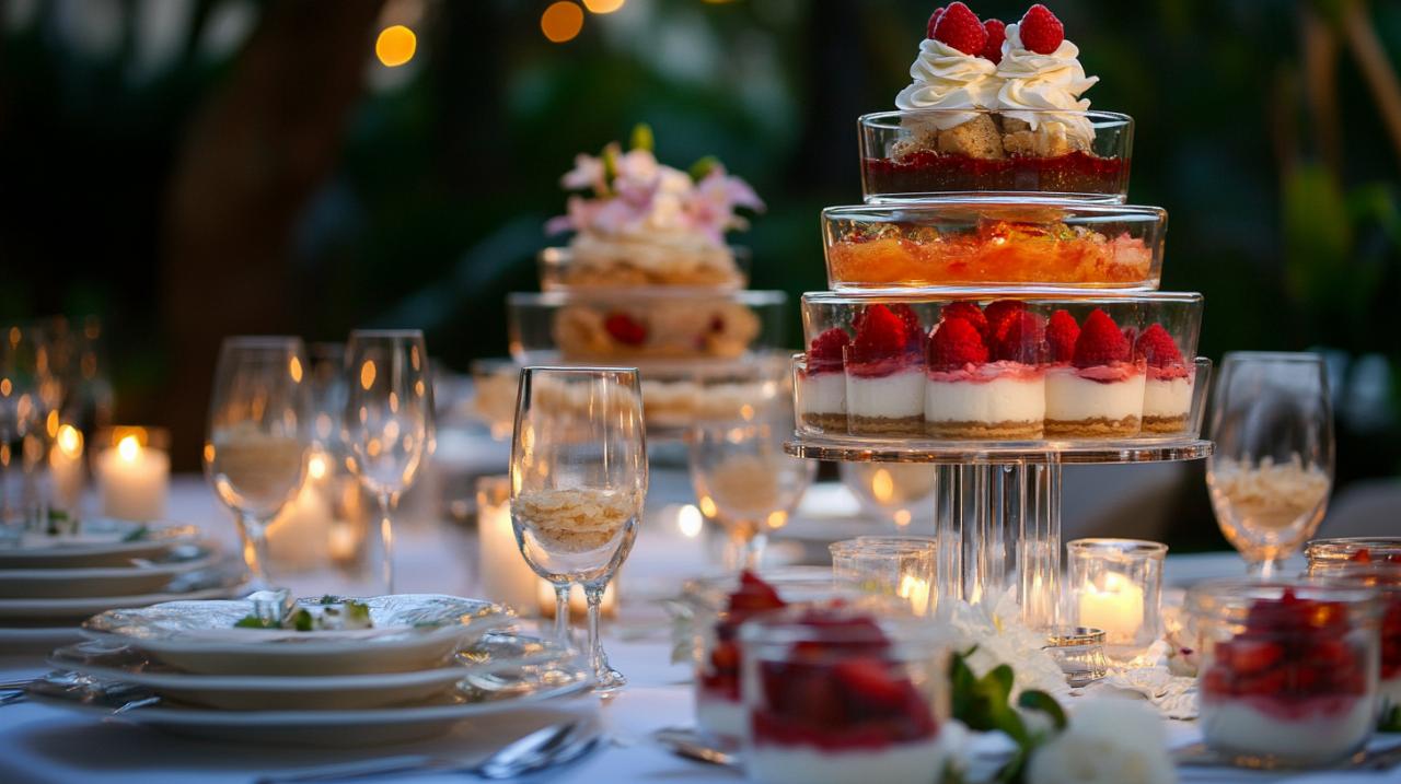 El contenedor no es un detalle menor, sino que determina cómo se percibe y consume cada creación. Los vasos de vidrio transparente constituyen la opción más versátil, permitiendo apreciar las capas y texturas desde el exterior, lo que resulta especialmente valioso en preparaciones multicolor como los vasitos de mango y nata o aquellos con frutos rojos. El tamaño importa: recipientes de entre cien y ciento cincuenta mililitros resultan ideales para porciones que satisfacen sin abrumar, especialmente cuando el postre cierra una comida completa. Para eventos más informales o buffets donde los invitados se sirven de pie, considerar vasitos con base ancha y estable que minimicen el riesgo de vuelcos. Las copas de champán o martini aportan un toque adicional de sofisticación para celebraciones especiales, aunque requieren mayor cuidado en el transporte. Independientemente del formato elegido, asegurar que todos los recipientes sean del mismo tipo para mantener coherencia estética en la presentación conjunta. Algunos postres para eventos se benefician de recipientes desechables de calidad cuando se preparan en grandes cantidades, facilitando la logística sin sacrificar la apariencia elegante que caracteriza a estas preparaciones.